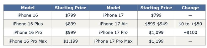 价格,永远是消费者最关心的话题。摩根大通预测,除了Pro型号,iPhone 17系列的价格将基本保持稳定。